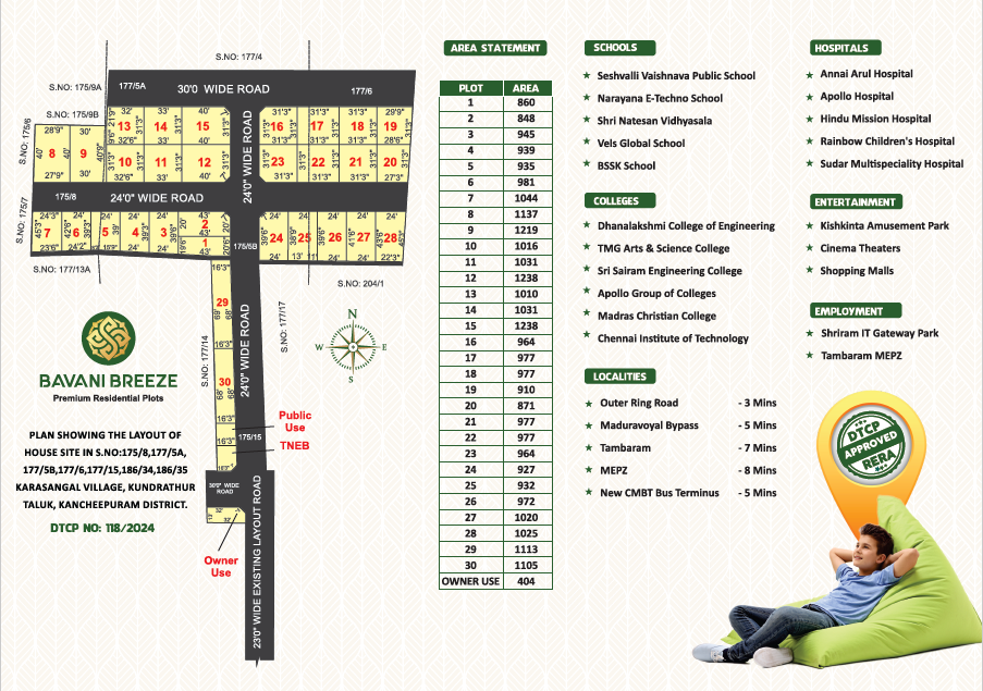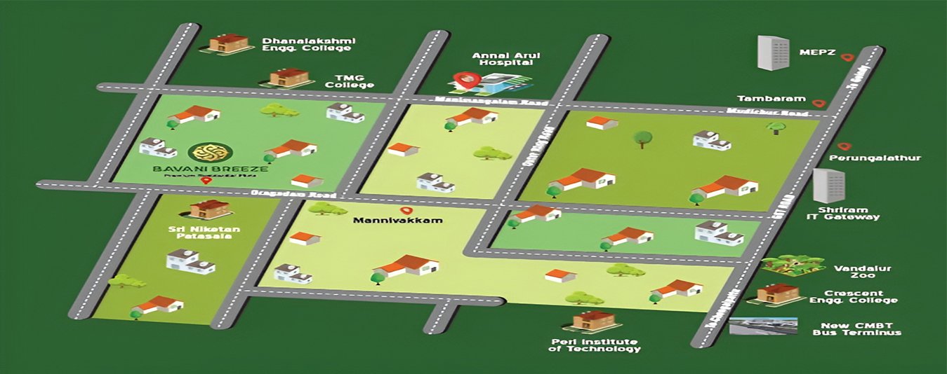 Bhavani Breeze offers well-planned residential plots for sale in Vandalur Kelambakkam Road, one of Chennai’s fastest-developing residential corridors. Located close to Tambaram and key connectivity hubs, this gated community is ideal for families planning to build a dream home and for investors looking for long-term appreciation. Developed by Redsand Group, a trusted real estate developer since 2010, Bhavani Breeze ensures clear titles, quality infrastructure, and customer-centric planning, making it a reliable choice for plot buyers.